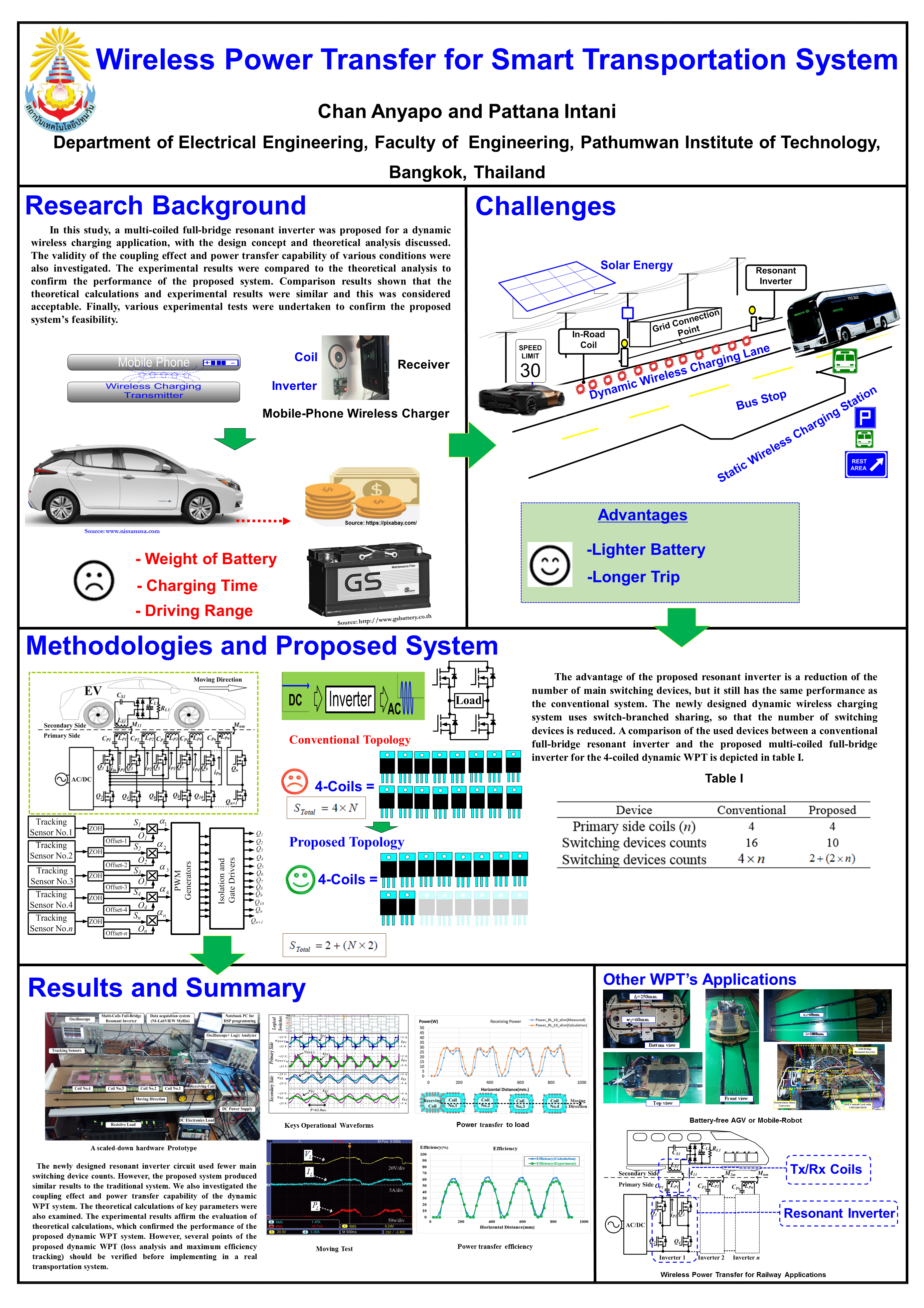 2. C. Anyapo and P. Intani ,“ Development of Long Rail Dynamic Wireless Power Transfer for High-Speed Train” The 16th International Conference on Electrical Engineering,Electronics, Computer, Telecommunications and Information Technology or ECTI-CON 2019. July 10-13, 2019, Pattaya, Thailand,2019, pp.582-585.